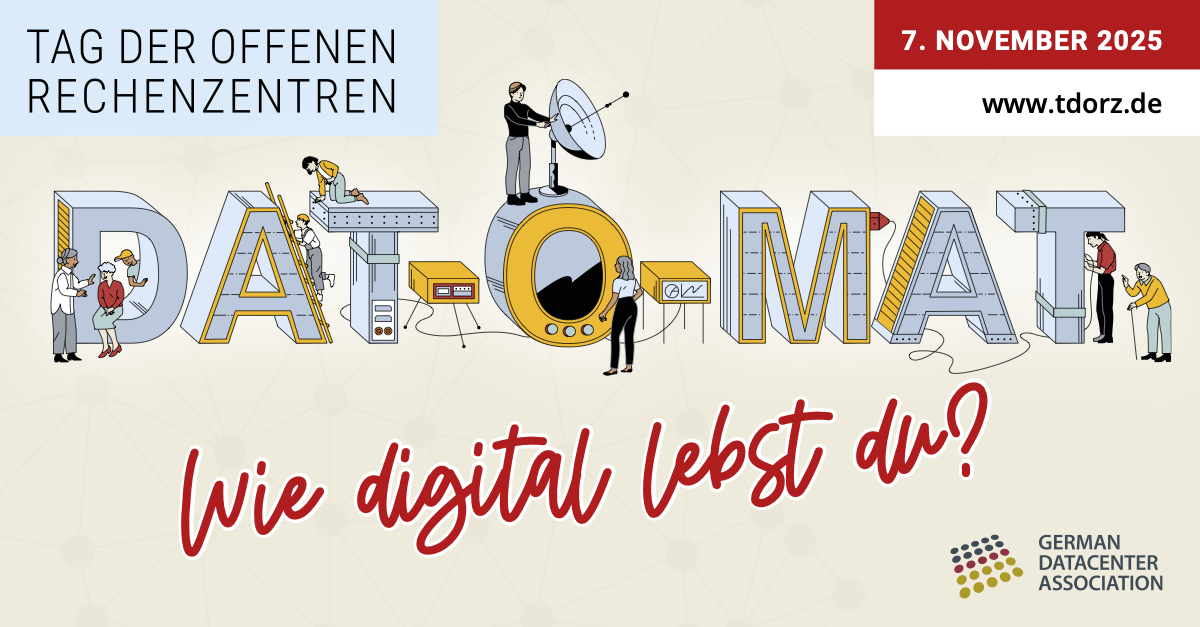 Der Dat-o-Mat ist Teil der Informationskampagne der German Datacenter Association e.V. (GDA). Auf der Website des Tags der offenen Rechenzentren gibt es weitere spannende Einblicke in die Welt der Rechenzentren, das Rückgrat unserer digitalen Infrastruktur.